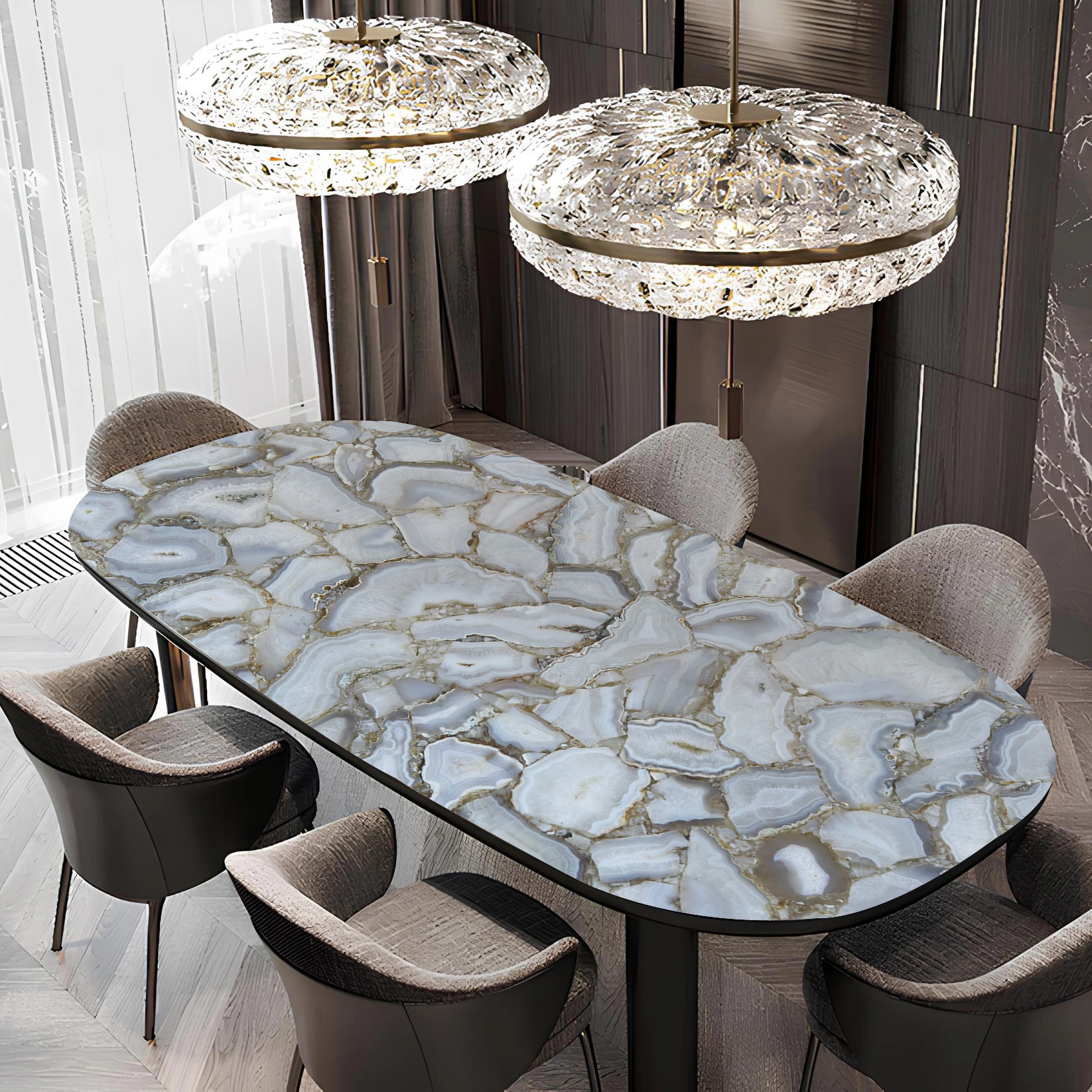 Blue lace agate is a unique variety of chalcedony quartz known for its mesmerizing light blue and white banded patterns. Originating primarily from Namibia, this rare gemstone is highly valued for its calming and soothing properties. Blue lace agate is associated with the throat chakra, making it beneficial for communication, self-expression, and emotional healing. Wearing blue lace agate jewelry or keeping a piece nearby can help relieve stress, promote inner peace, and inspire confidence. Due to its delicate appearance and rarity, blue lace agate is a stunning addition to any jewelry collection and home decor.
