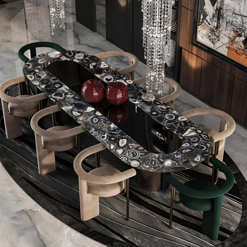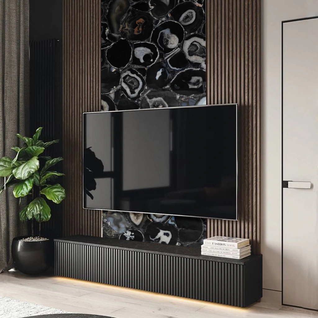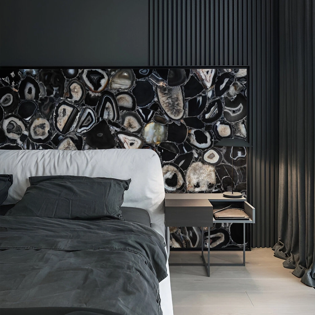 Brazilian Black Agate slabs are renowned for their mesmerizing beauty and vibrant hues. These natural stone slabs showcase a stunning array of blacks, reminiscent of ocean waves, making them a perfect choice for creating a serene and elegant ambiance. Each slab features unique patterns and veining, adding a touch of individuality to any space. Known for their durability and versatility, Brazilian Black Agate slabs can be used for countertops, wall art, or decorative accents. Embrace the tranquil essence of nature with these exquisite slabs, bringing sophistication and calm to your home or office.