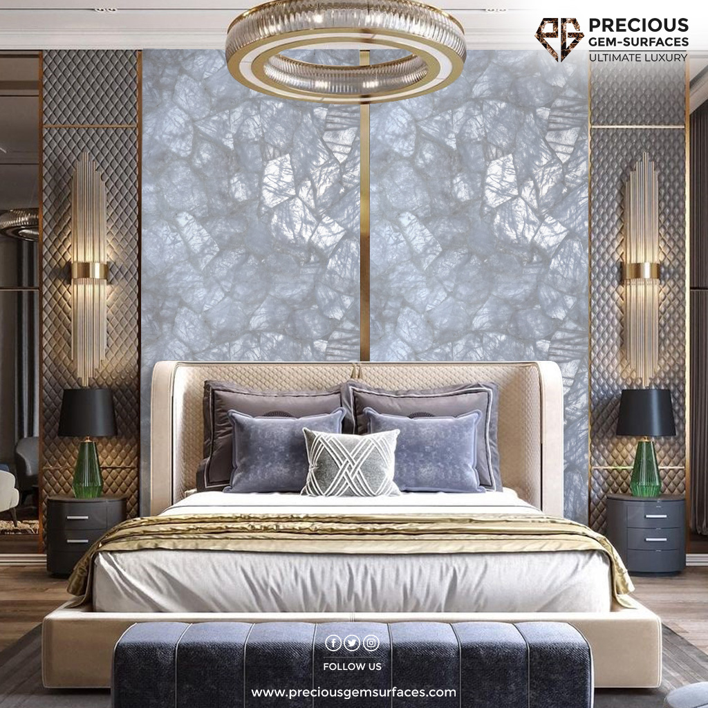Quartz accent walls. Whether in the living room, bedroom, or dining area, these
