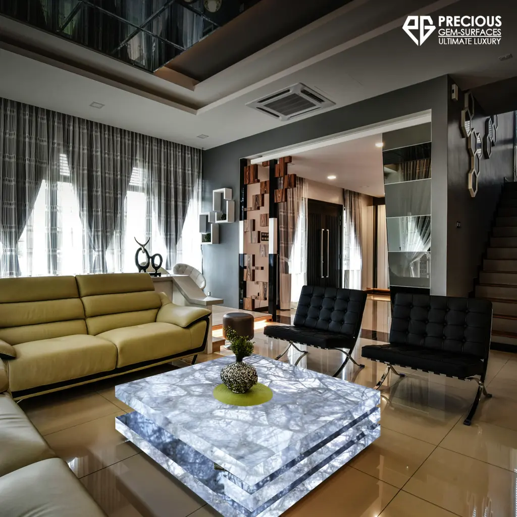 - White Crystal Quartz Accent Walls:Make a bold statement with White Crystal
